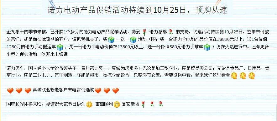 有驚喜活動好禮相送!!公司名稱:貴州諾力機械設備有限公司聯(lián)系人:胡經(jīng)理手機: 18798053880 電話:0851-84132448 QQ:357856992售后服務:小李電話: 0851-84132448 18275026604網(wǎng)址:http://m.mrsq.com.cn傳真: 0851-84132448地址:貴陽市觀山湖區(qū)金華汽配城16-9